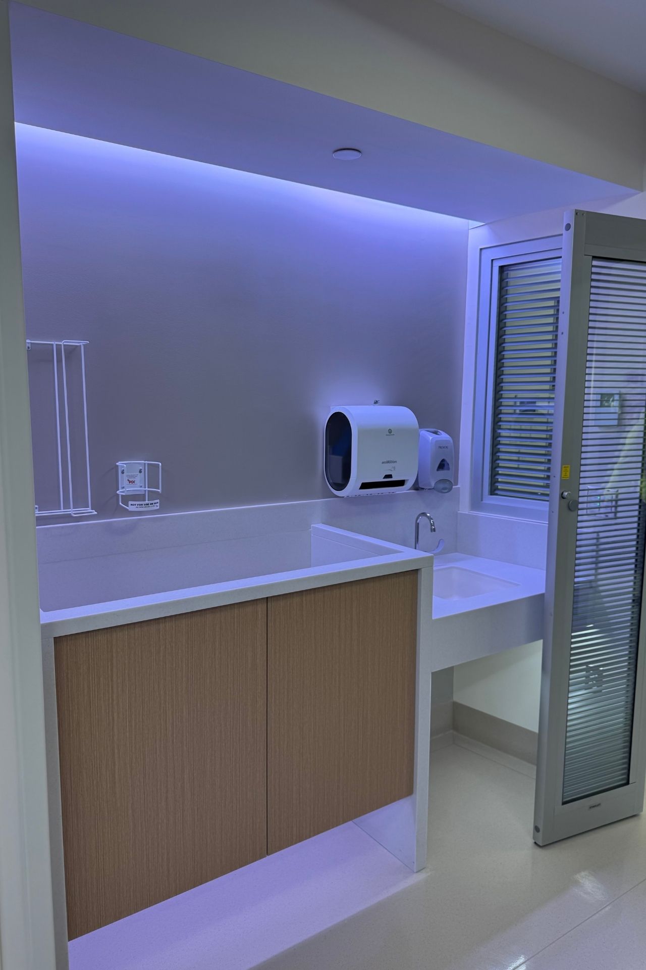 For this inpatient room mockup, Highrise delivered finish work designed for high-visibility healthcare environments—where details matter and surfaces need to perform day after day.