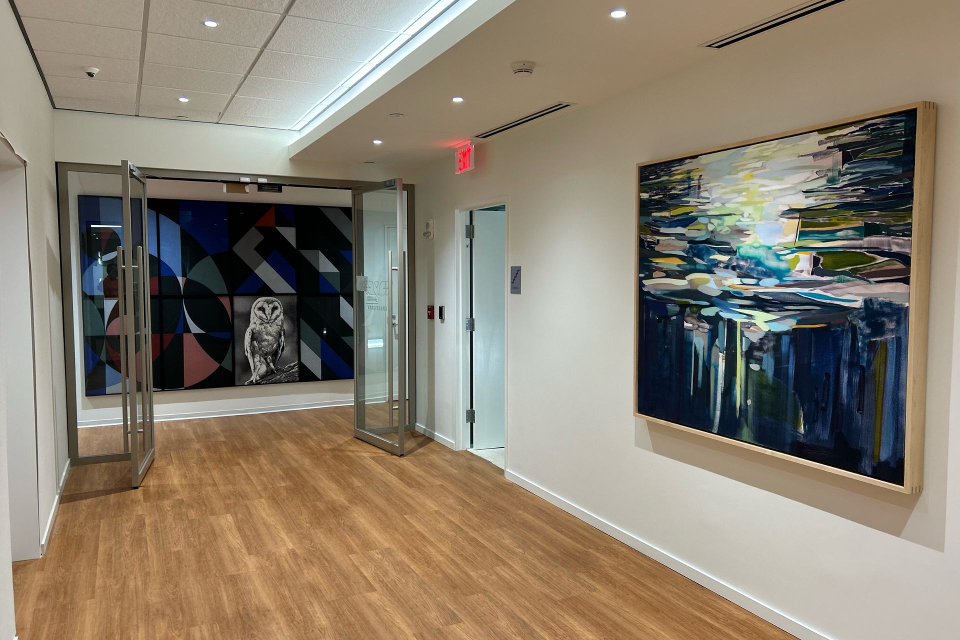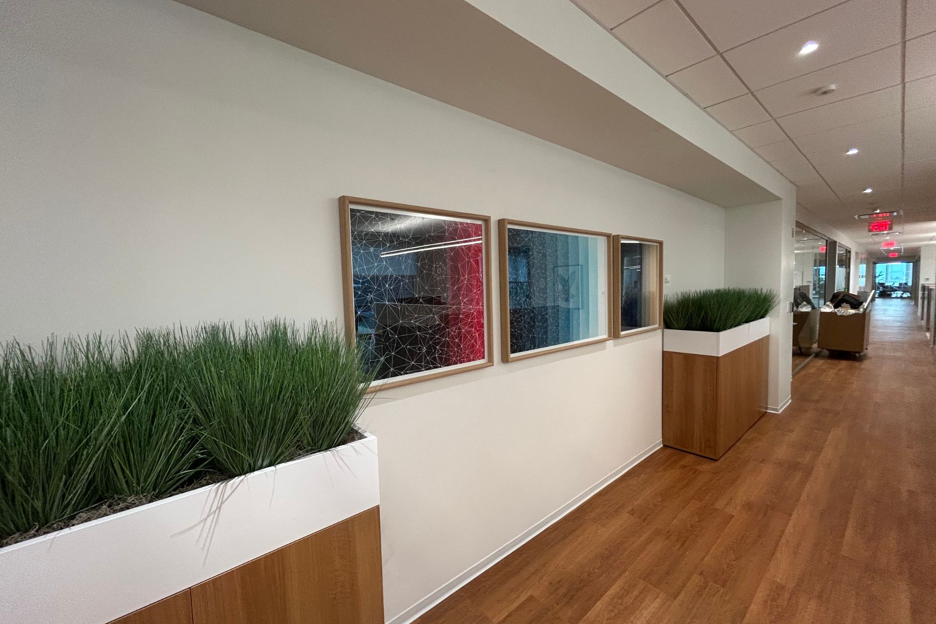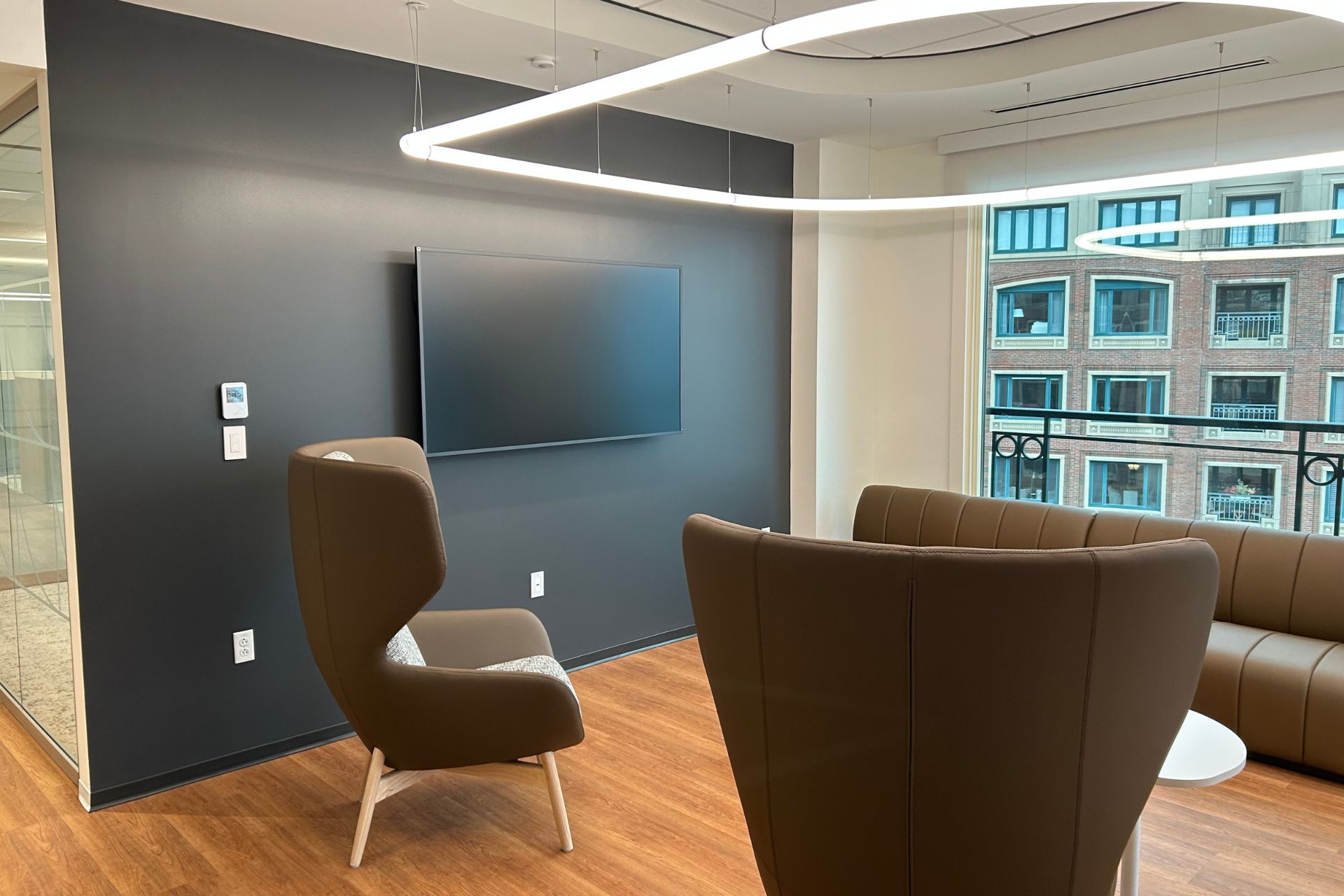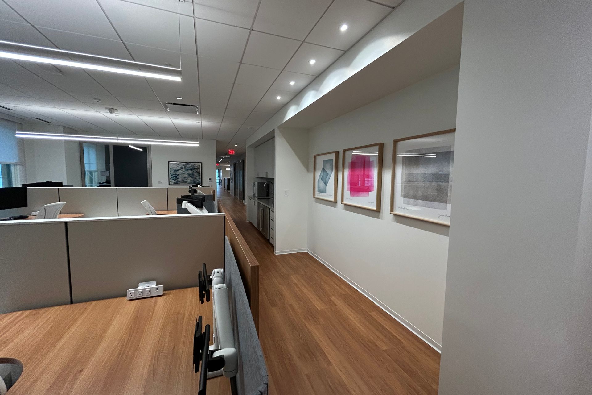 - Modern palette execution: Deep accent walls paired with bright, clean common areas to support a polished corporate look
